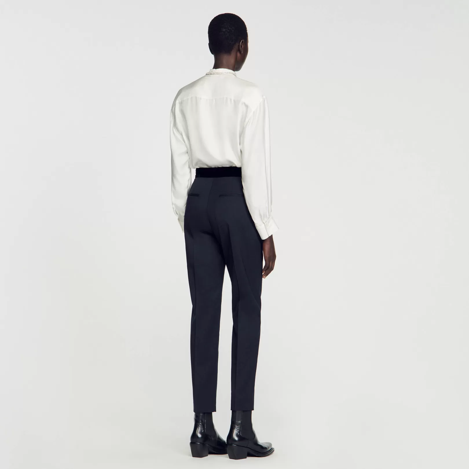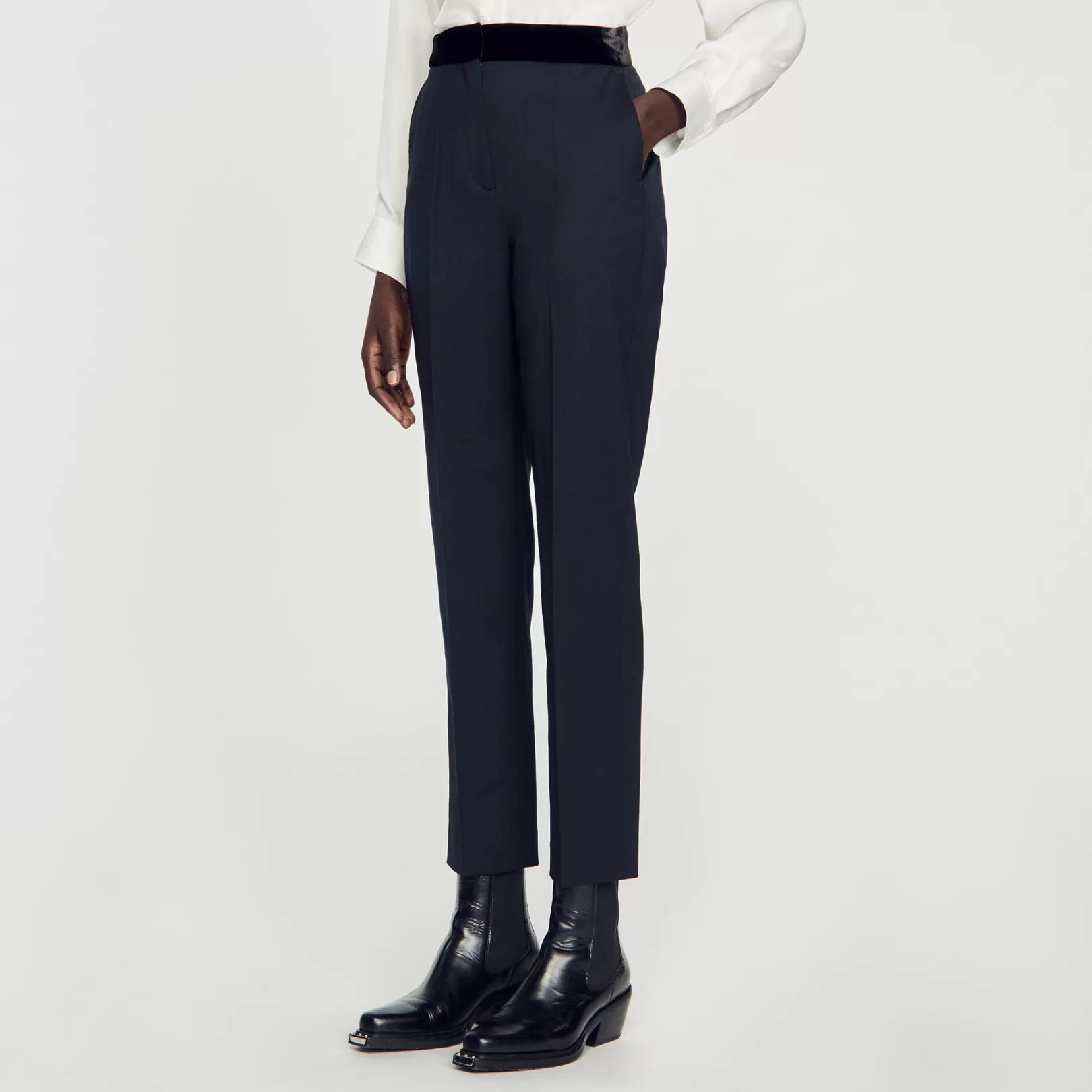 DescriptionSandro women’s pants• Wool and recycled polyester pants• Velvet waistband• Slanted pockets at the front• Two piped pockets at the back• Iron-pressed creases at the center of the leg• These…