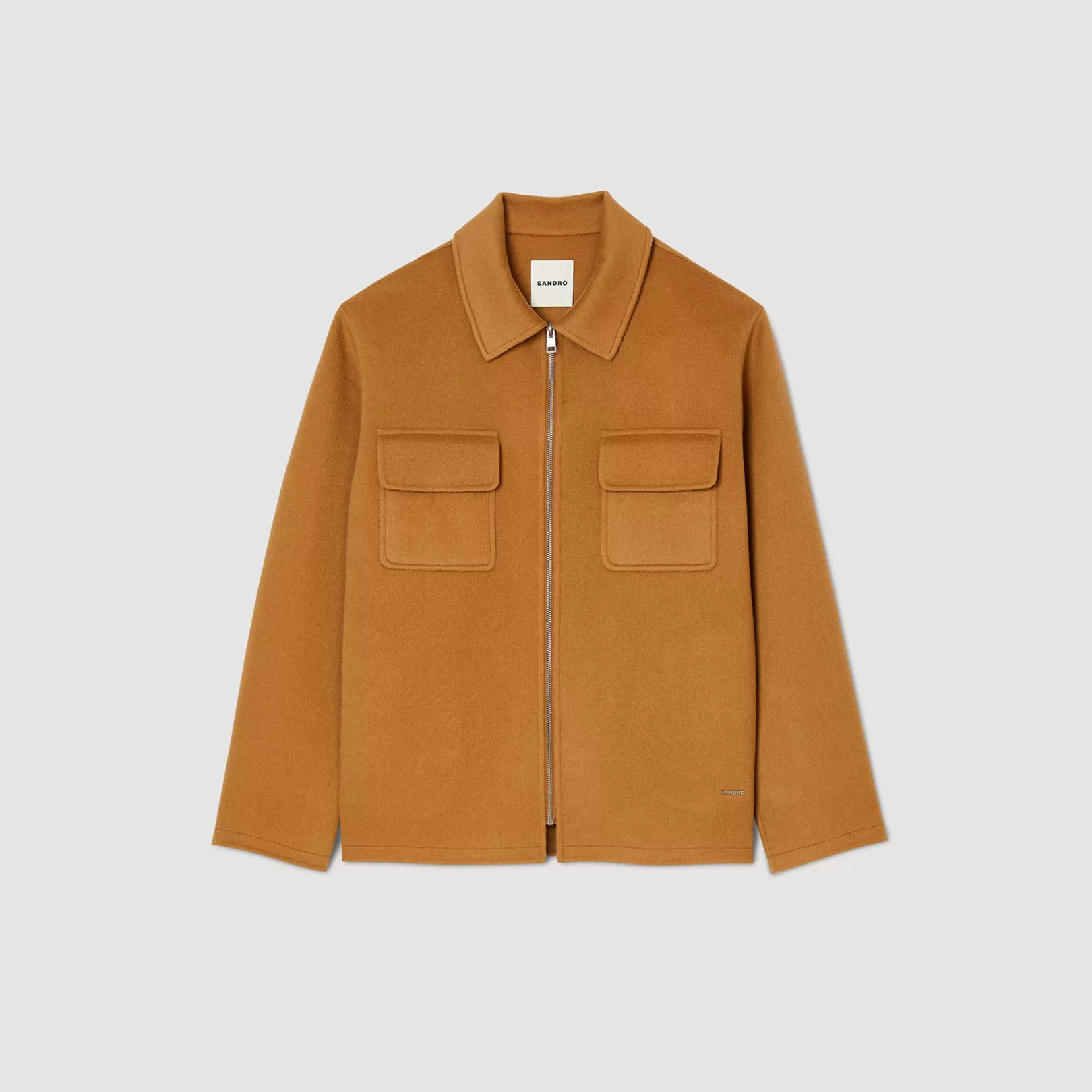 Dual-sided overshirt with long sleeves, a zip fastening and two chest patch pockets.