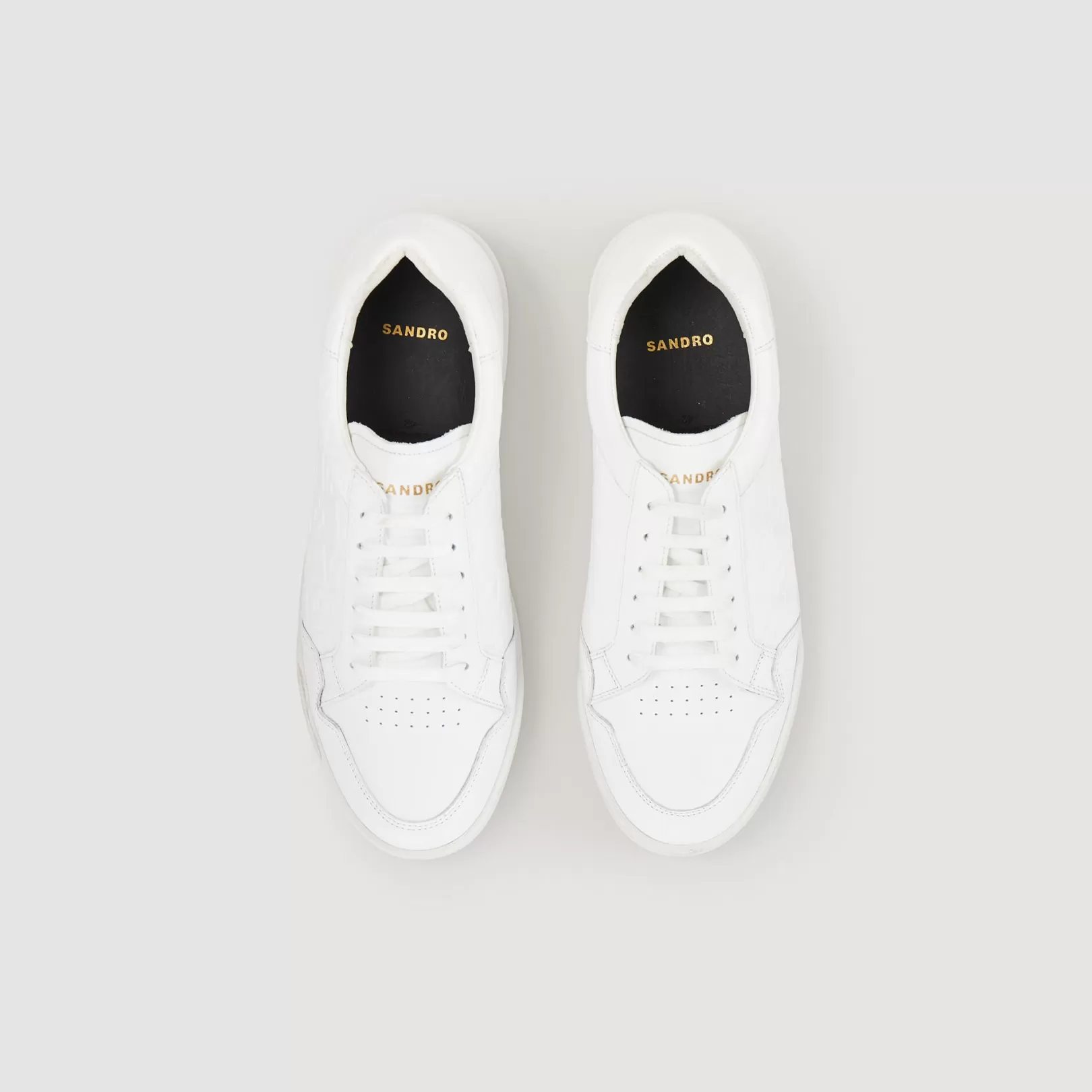 Embsed leather sneakers with a signature square crs motif, a lace-up fastening, and a front tongue.