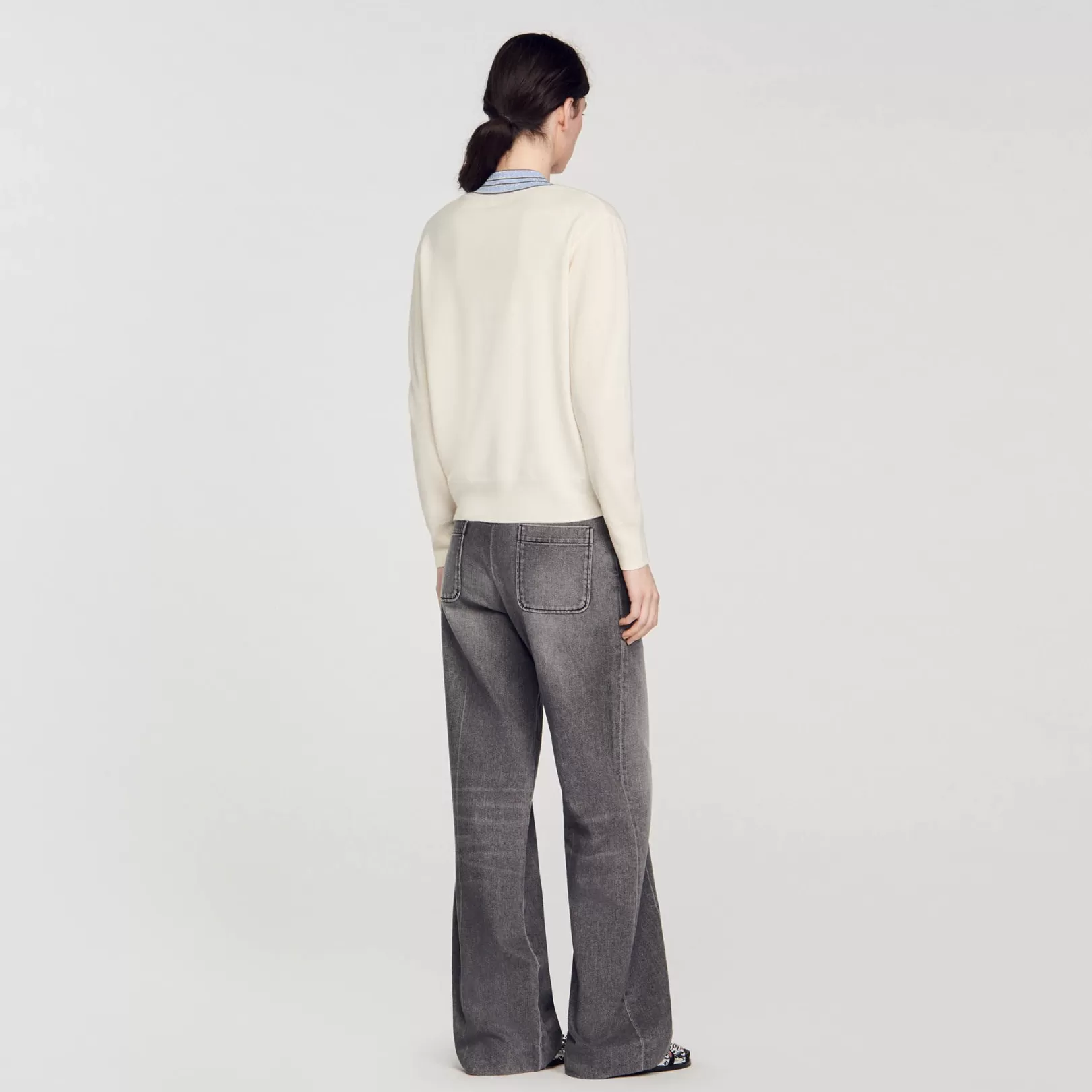 Loe-fit wool and cashmere jumper with long sleeves and a V-neck with fancy knit ribbing on the neck.